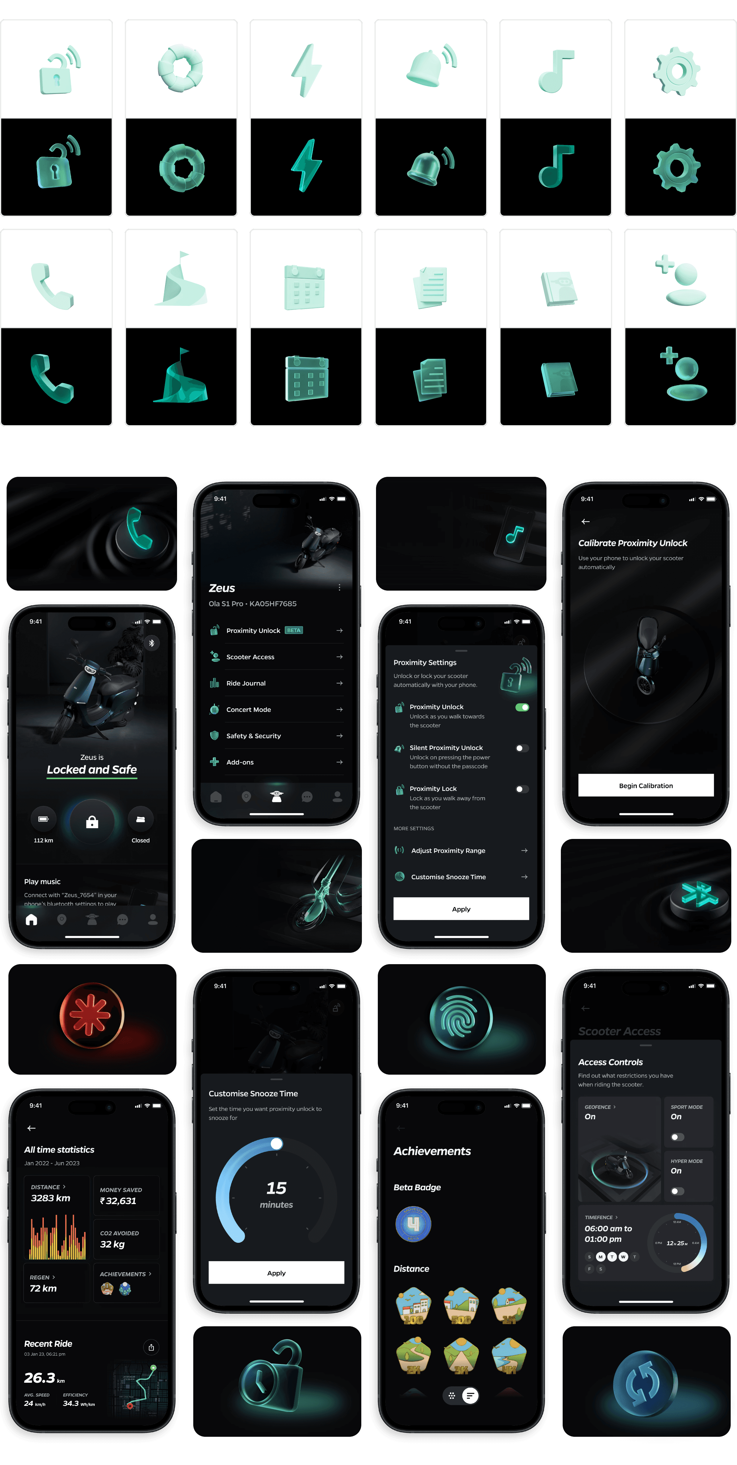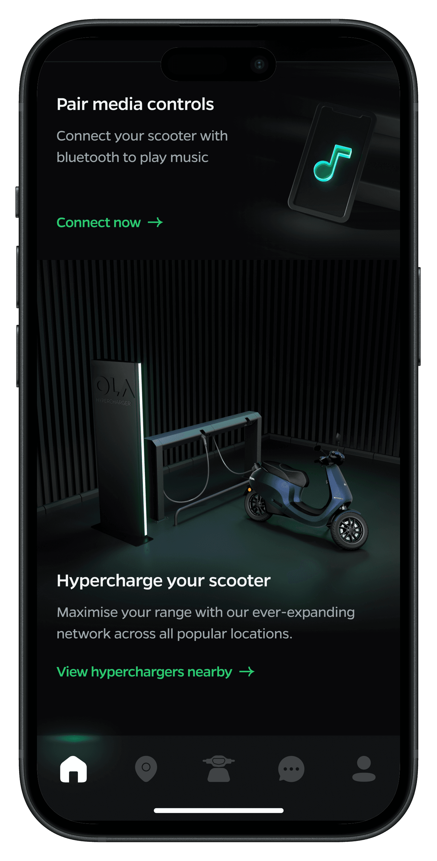 The Ola Electric companion app serves as the primary interface for our e-scooter users, offering features from vehicle management to ride analytics. As the lead UI designer for both the original light mode and this dark mode redesign, I recognised an opportunity to enhance user experience and modernise our visual language. Our user research revealed a strong demand for a dark theme, particularly for nighttime usage. This project aimed to not only implement a visually appealing dark mode but also to refresh the overall design, improving usability and aligning with current design trends.