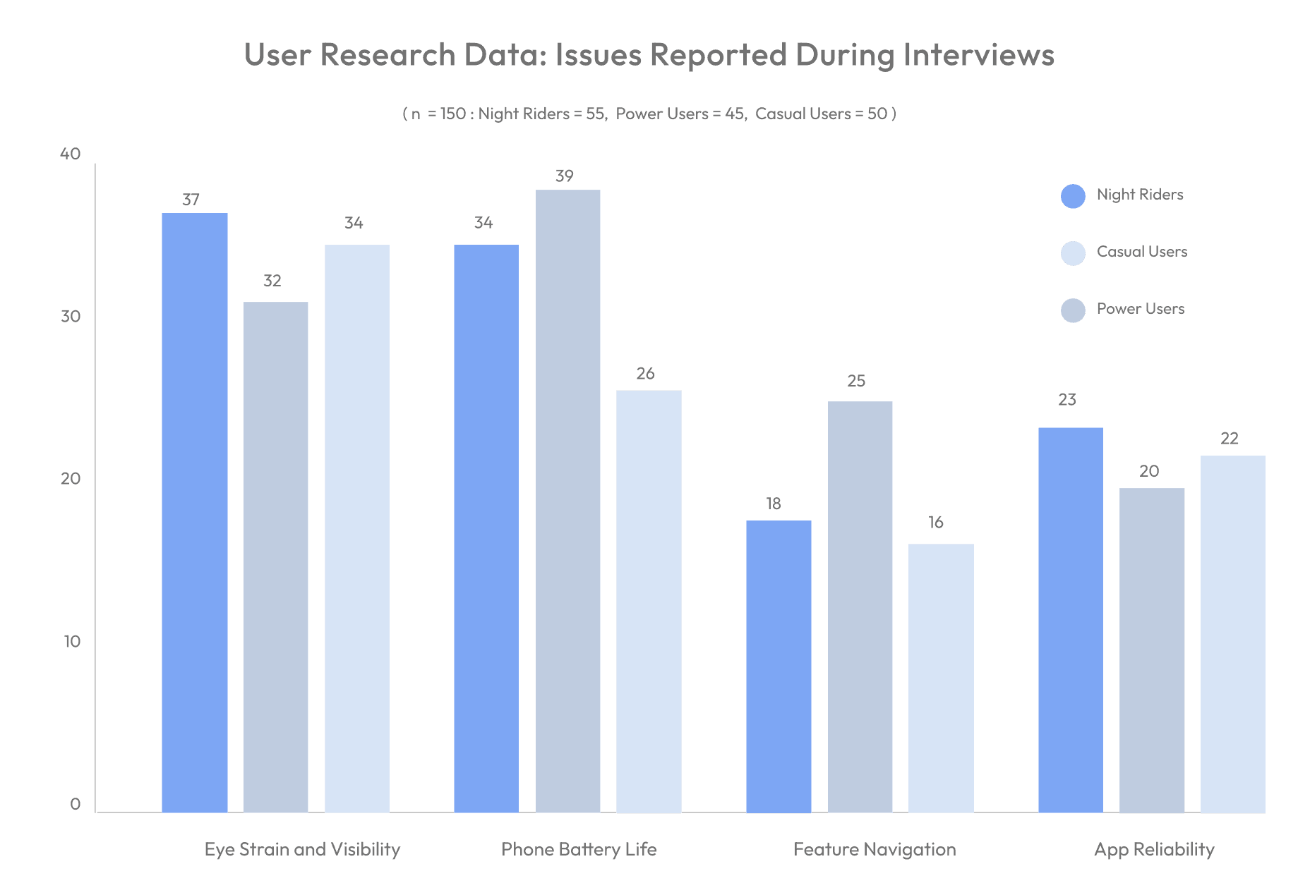 ( n = 150 : Night Riders = 55, Power Users = 45, Casual Users = 50 )