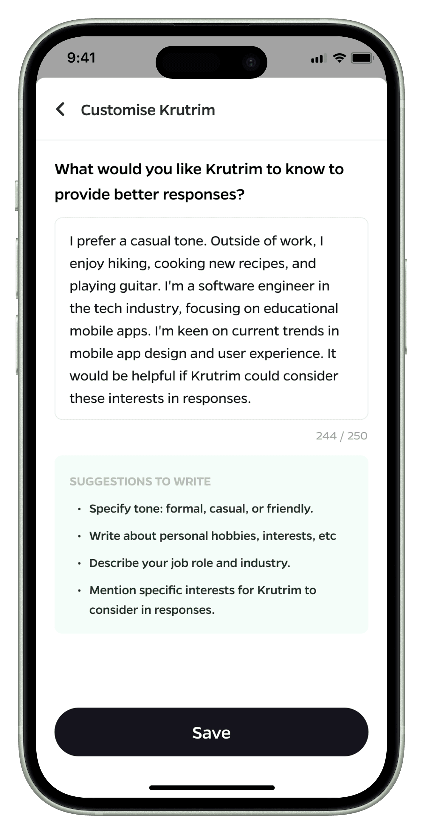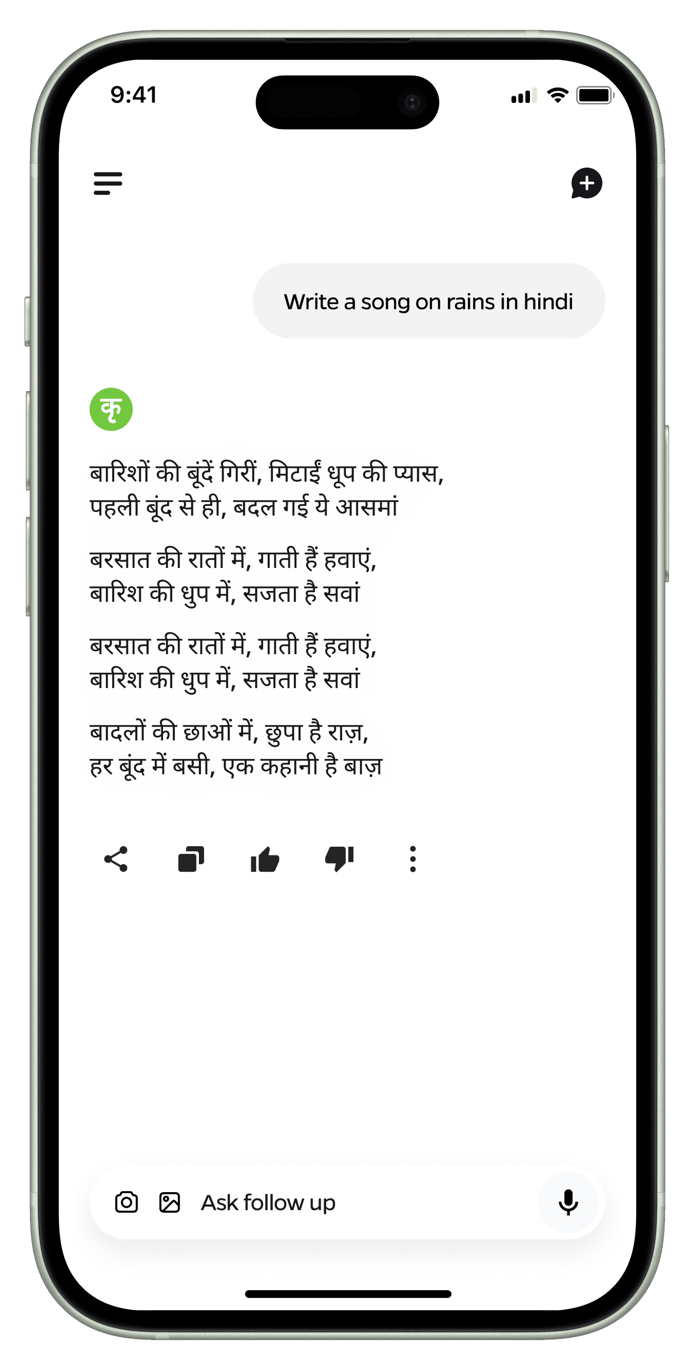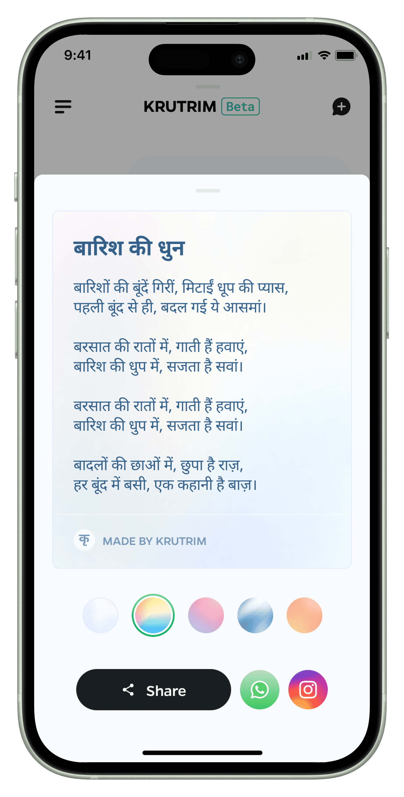 India's linguistic diversity presents unique challenges for AI assistants. With over 22 official languages and hundreds of dialects, its a major challenge to create an interface that suits the needs of such a wide demographic. Krutrim AI's interface was meticulously crafted to address these unique challenges. The design philosophy centers around three core principles: simplicity, flexibility, and cultural sensitivity. These principles are woven into every aspect of the user interface, creating an app that is not just a tool, but a culturally resonant digital companion for users across India.