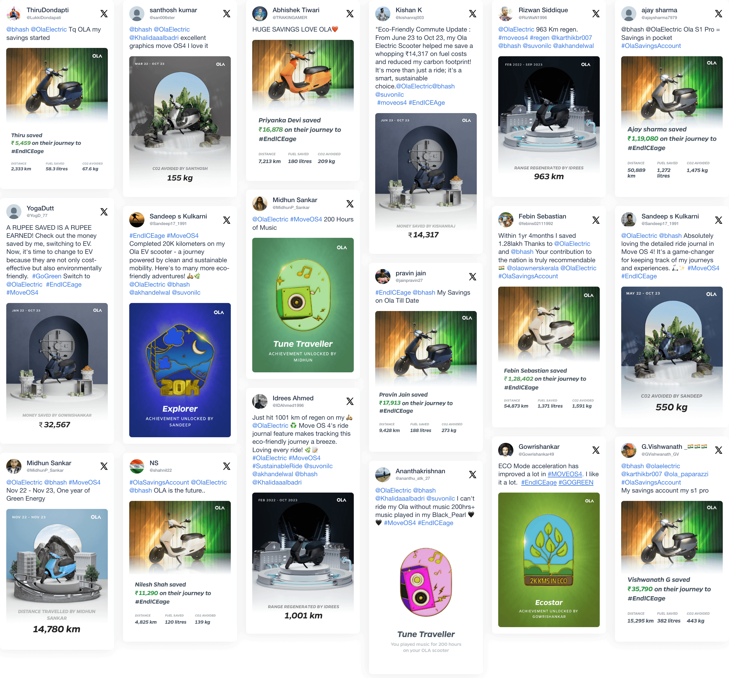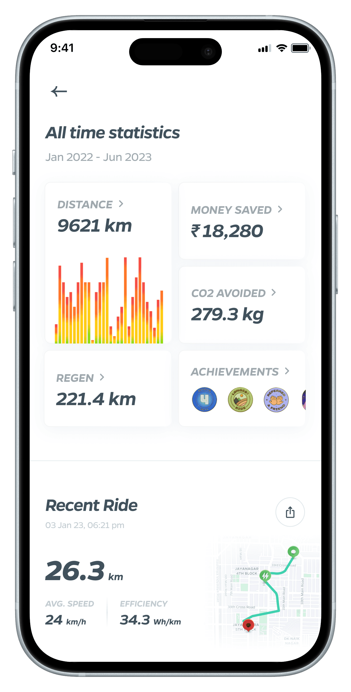 Ola Electric EV scooters come packed with various features and riding modes. Our data showed that a significant portion of users weren't utilising these capabilities fully. To address this, we developed a gamified ride analytics system that not only educates users about different features and modes but also provides detailed insights into their riding patterns and environmental impact.