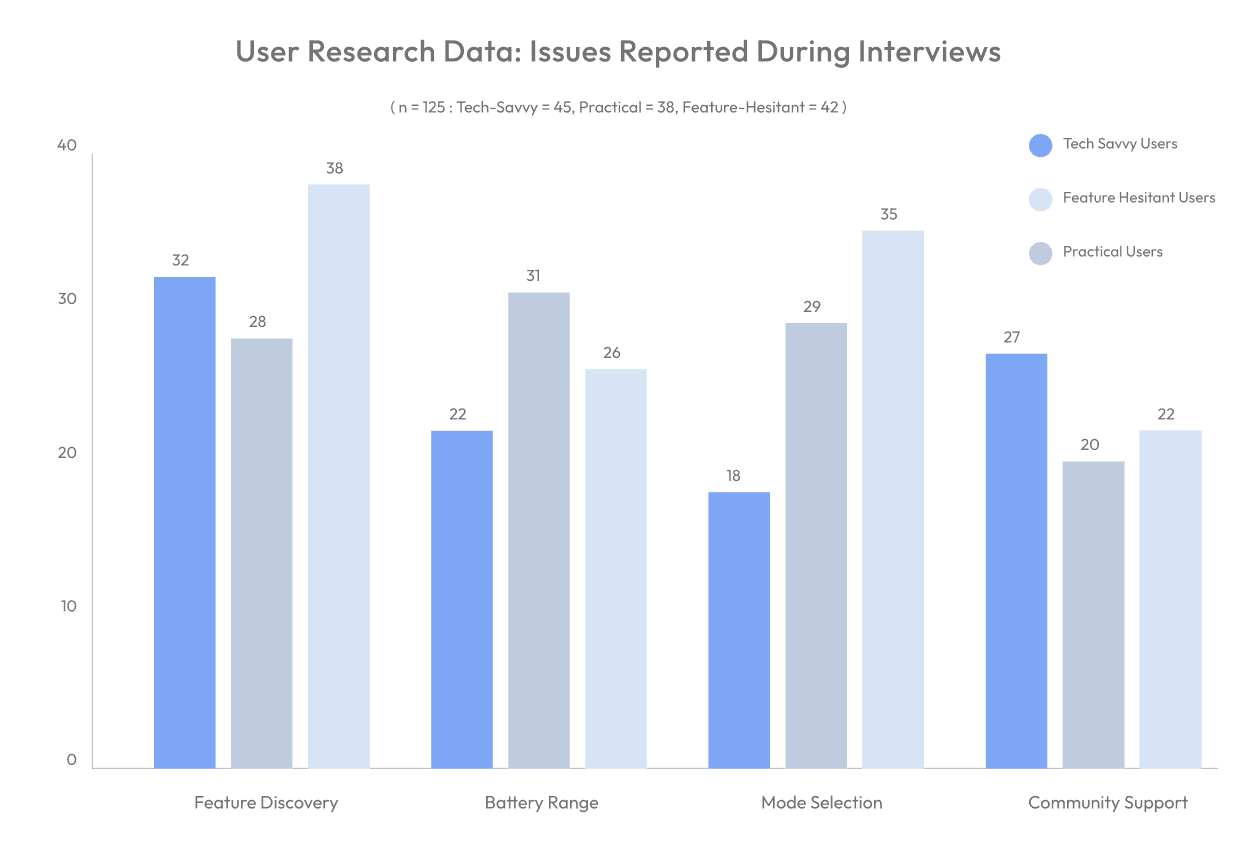Many Ola Electric scooter users were unaware of or underutilising the various features and riding modes available to them. This lack of engagement with the scooter's full capabilities led to suboptimal user experiences and reduced the potential benefits of owning an electric scooter, such as energy efficiency and reduced environmental impact.