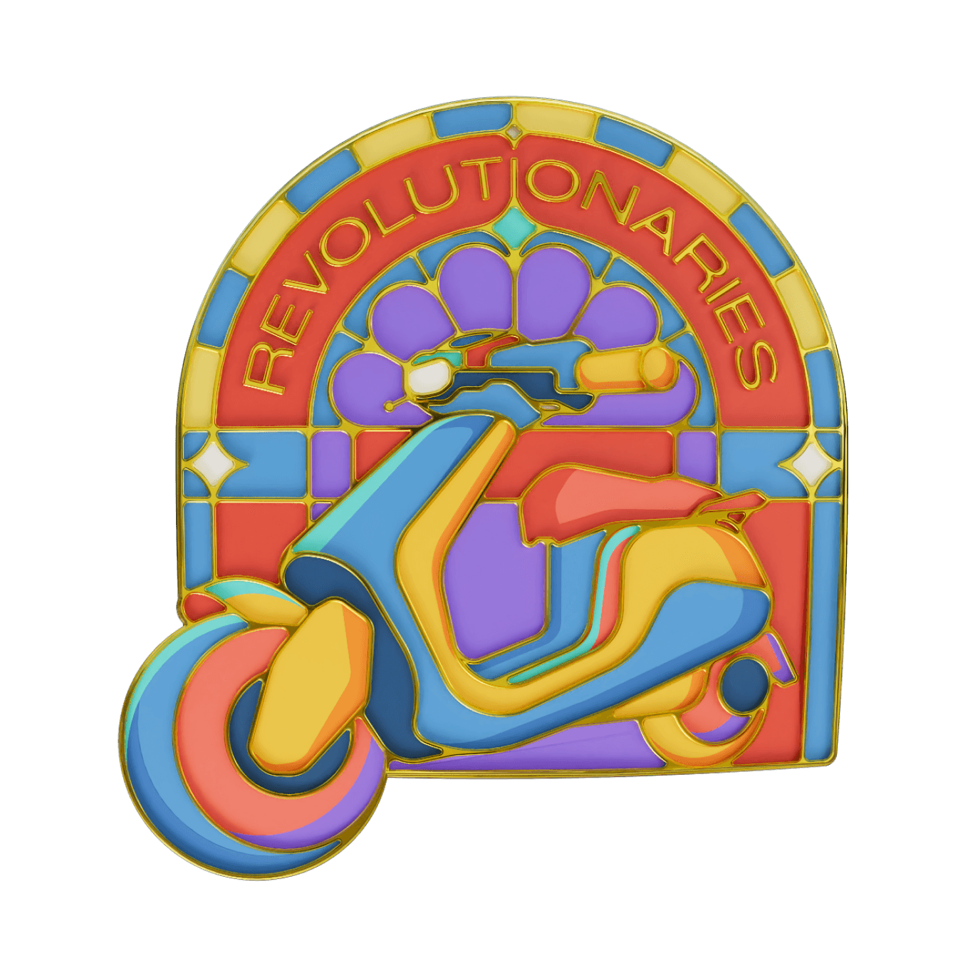 Visually appealing badges designed with vibrant colours and iconic imagery