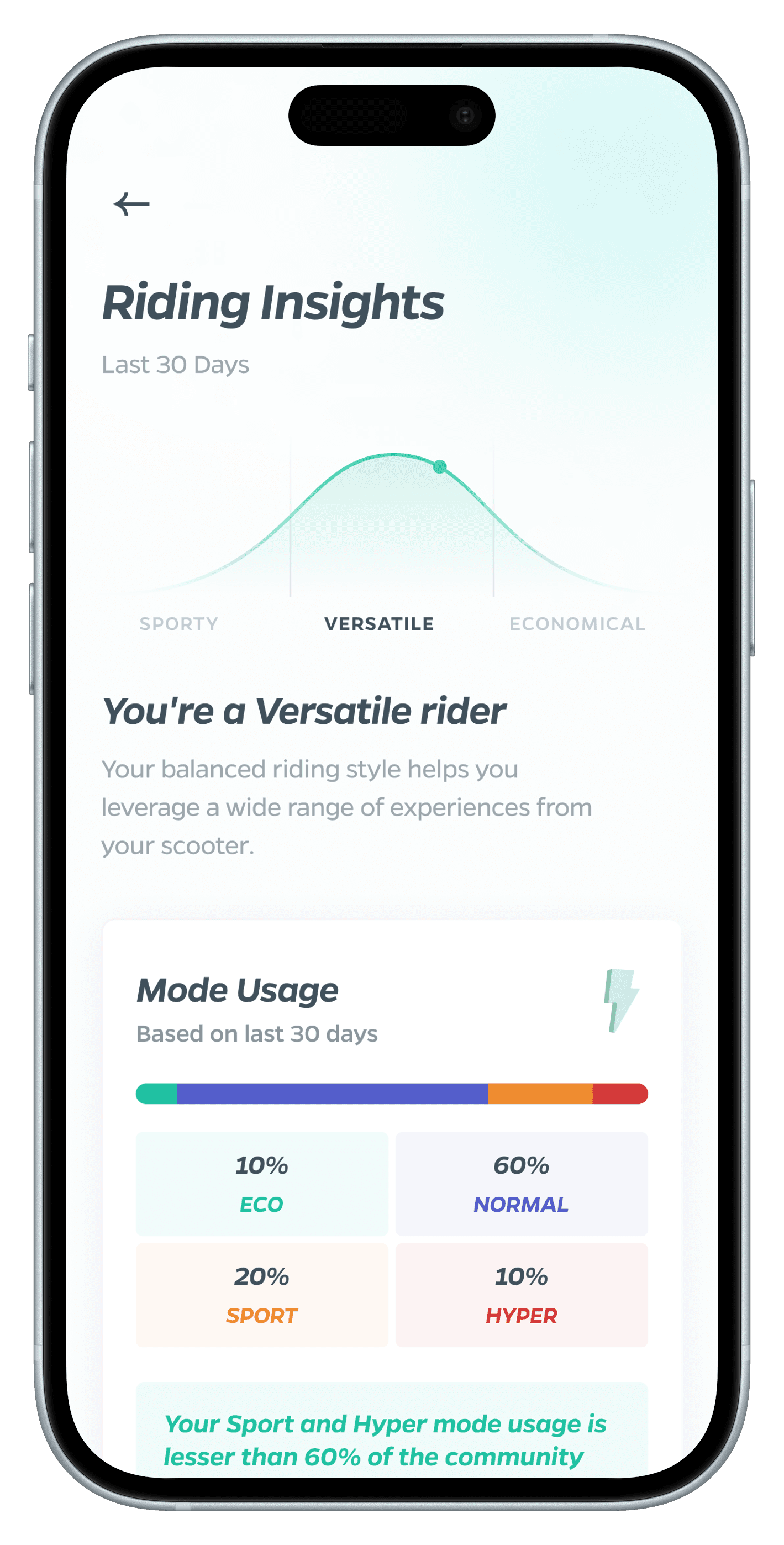 Personalized riding style feedback (e.g., "Versatile rider", "Eco-warrior")
